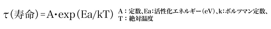 電解コンデンサーは、使用温度が高いほど早く劣化します。これは「アレニウスの法則」という化学の法則で説明でき、ざっくり言えば、温度が10℃上がると化学反応速度が2倍になる、というものです。